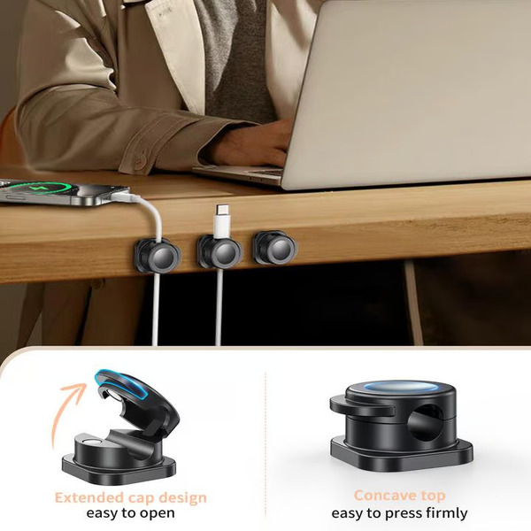 Udržuje vaše nabíjecí kabely přehledné a zabraňuje jejich pádu ze stolu.