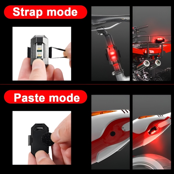 Tato světla jsou neuvěřitelně univerzální a jsou navržena tak, aby se hodila do automobilů, motocyklů, jízdních kol a dronů. Vyberte si mezi metodami instalace na suchý zip a gumový kroužek pro bezpečné a jednoduché nastavení. Nepotřebujete žádné složité nářadí ani odbornou pomoc.